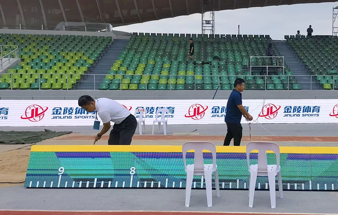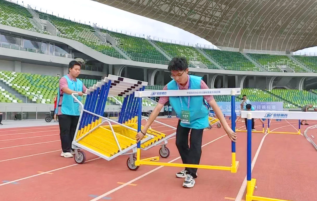 金陵体育为本次赛事提供了跨栏架、障碍架、跳高、跳远、链球、铁饼等田径系列器材,并提供了计时记分系统等赛事专用设备,同时公司专业的赛事保障团队倾力为参赛选手保驾护航,全方位保障了赛事的顺利进行。