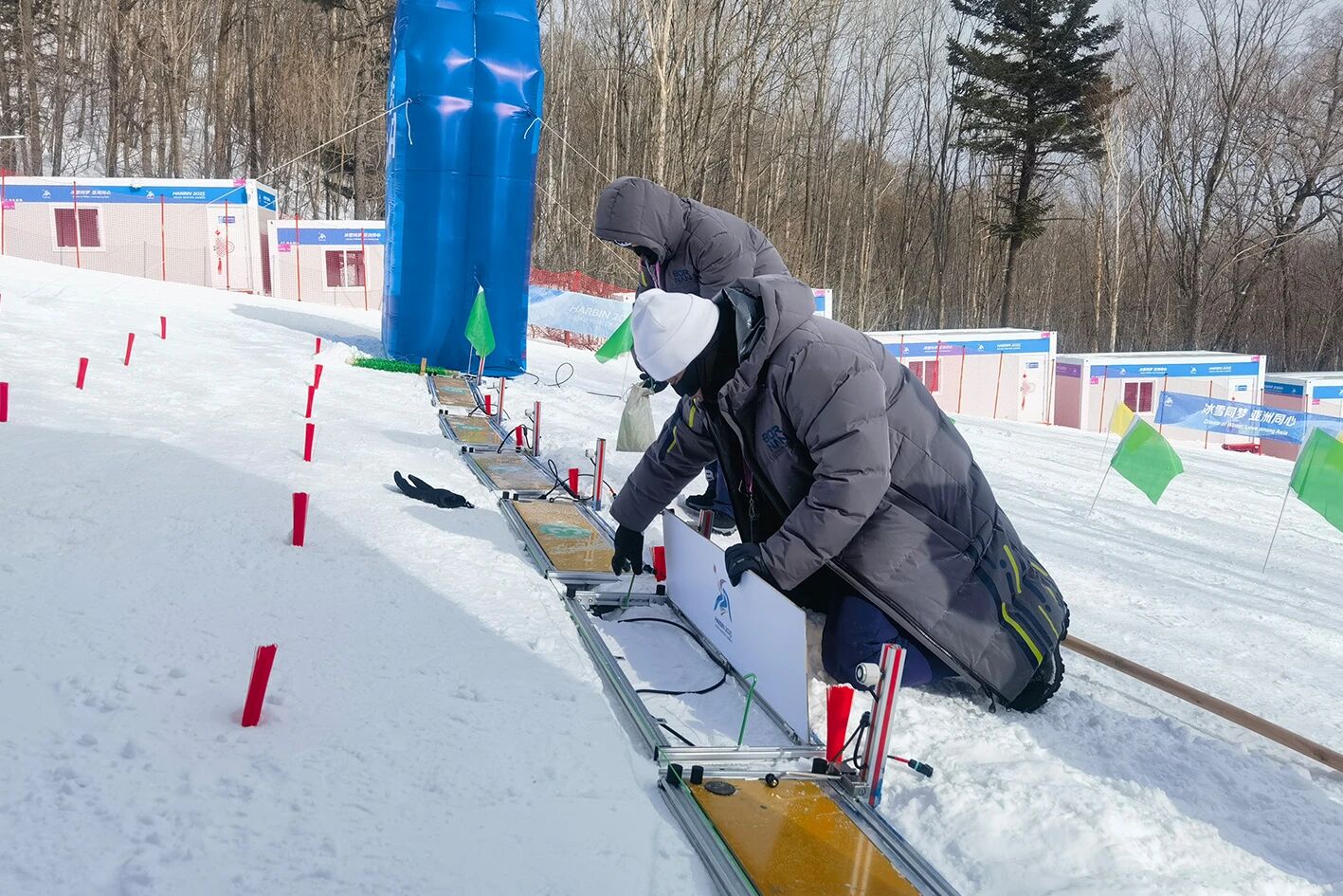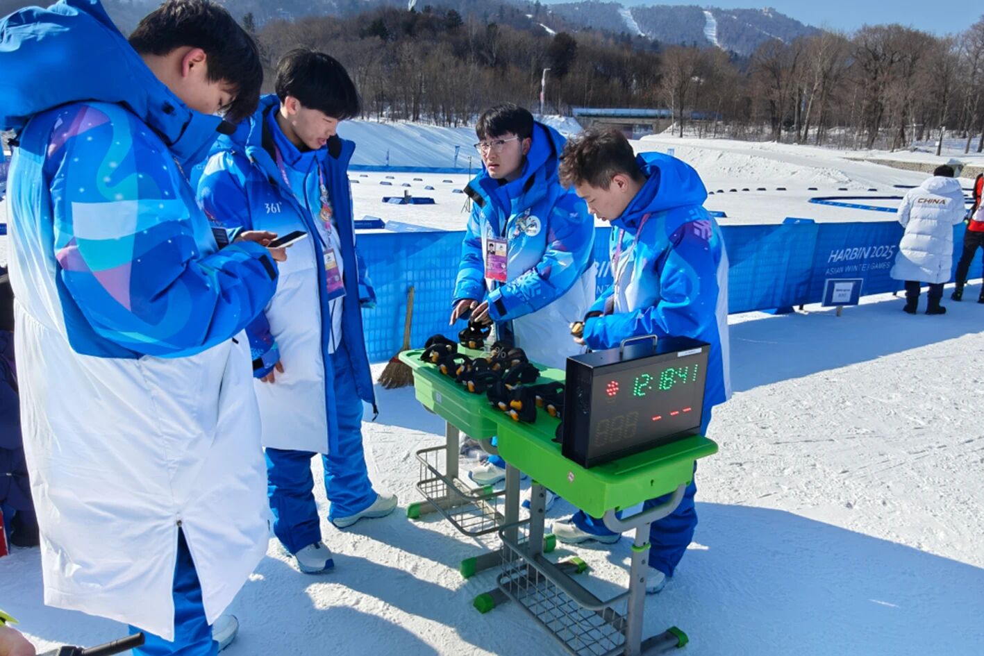 金陵体育作为赛事重要的技术支持单位,为自由式滑雪空中技巧、冬季两项、短道速滑等11个项目提供了计时记分、成绩处理、仲裁录像、竞赛视频等服务,确保赛事的顺利进行。