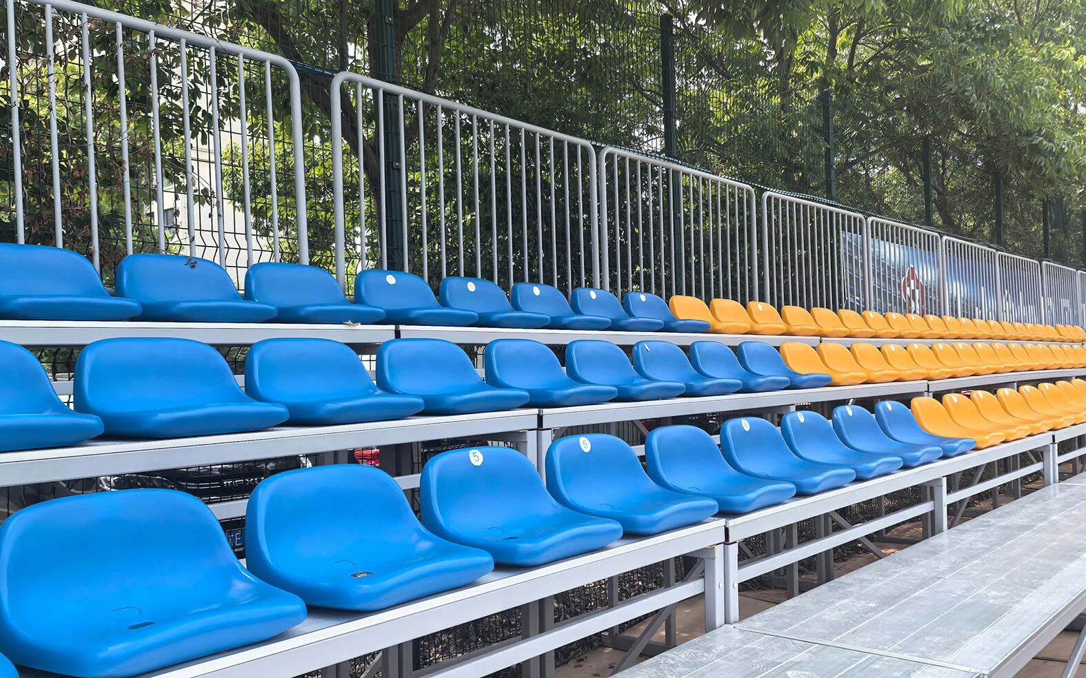 装拆式看台:灵活组合的观众座椅兼顾实用性与便携性,为赛事观赛体验提供舒适保障。
