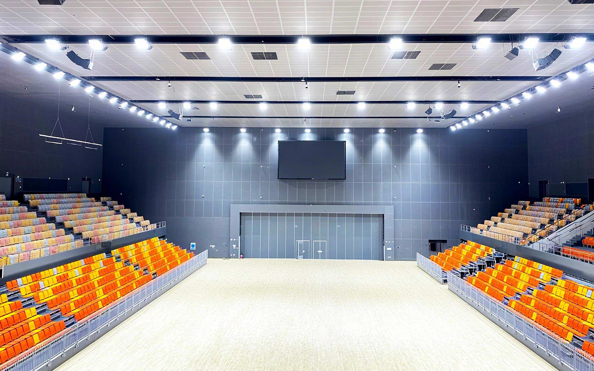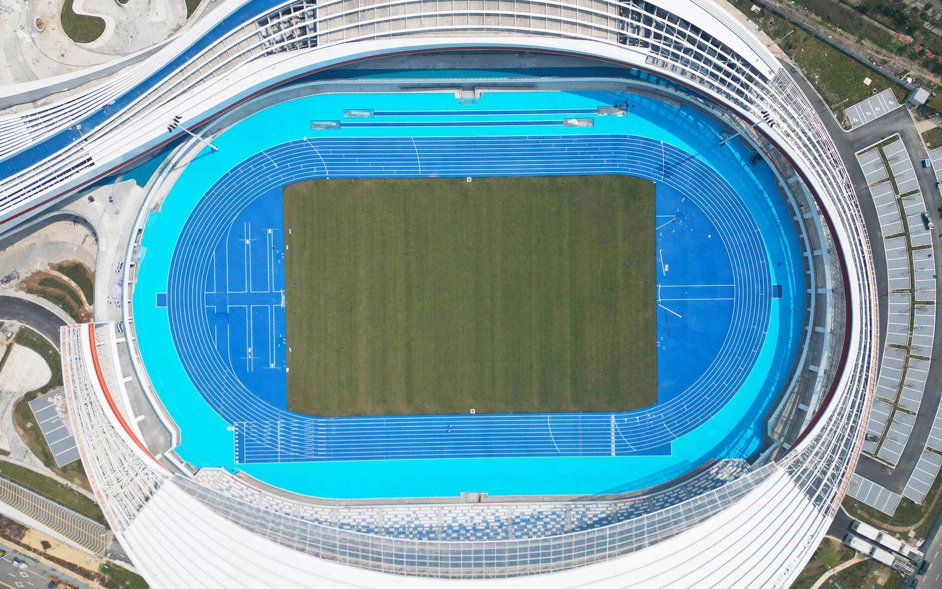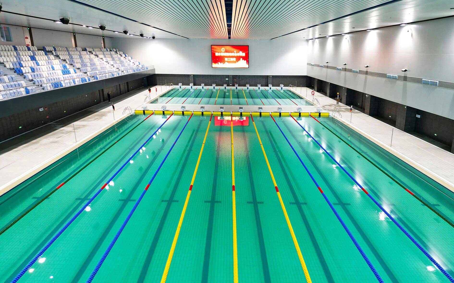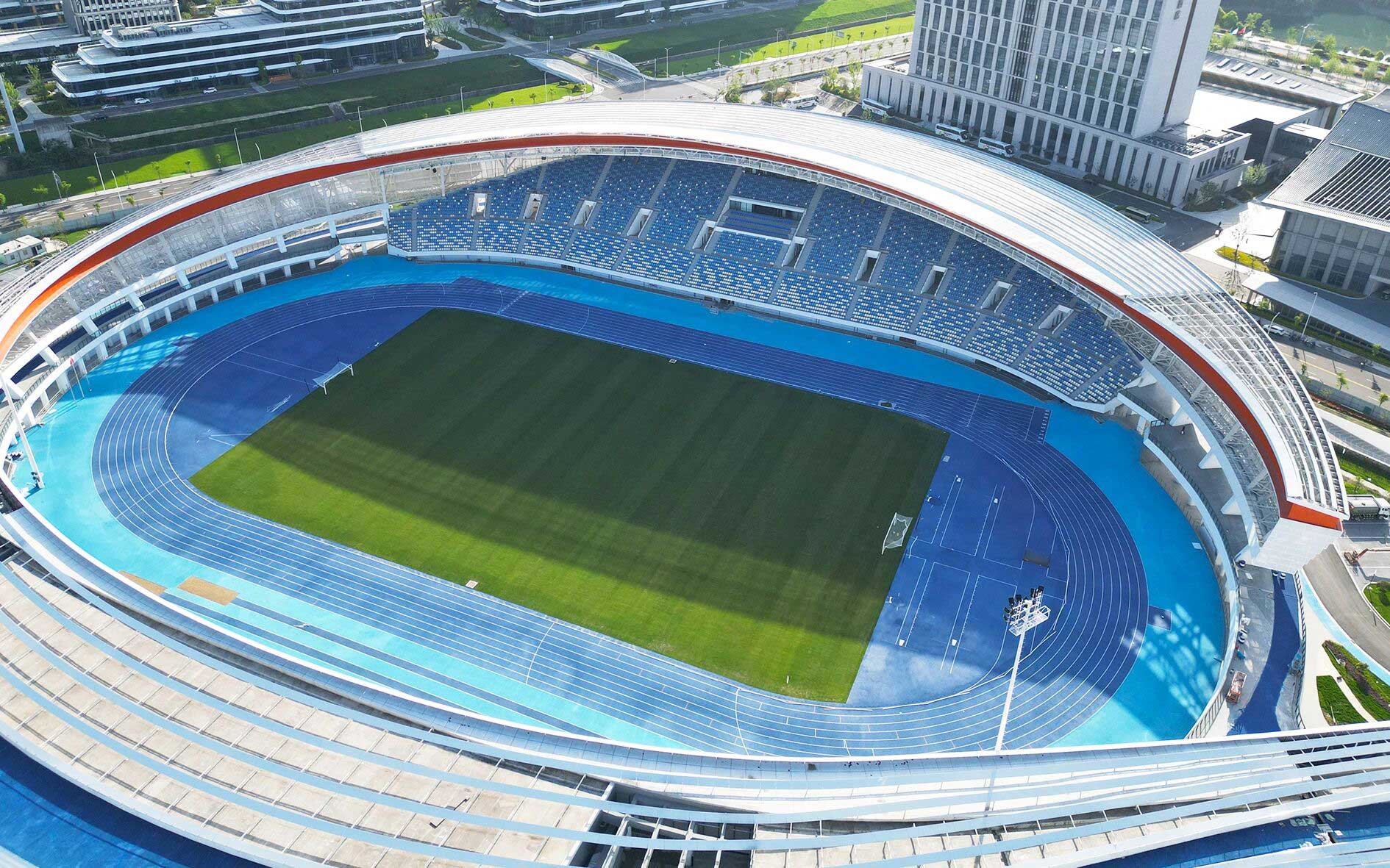 作为项目核心建设力量金陵体育承接了其中众多关键的体育工艺内容,覆盖所有室内场馆、室外球场及体育场的全流程体育工艺工程。从场地扩声和照明系统、LED大屏,到体育设施系统、各类体育器材、看台座椅,再到运动草坪、跑道铺设、泳池水处理、恒温除湿系统等,每一个细节都倾注了专业匠心。